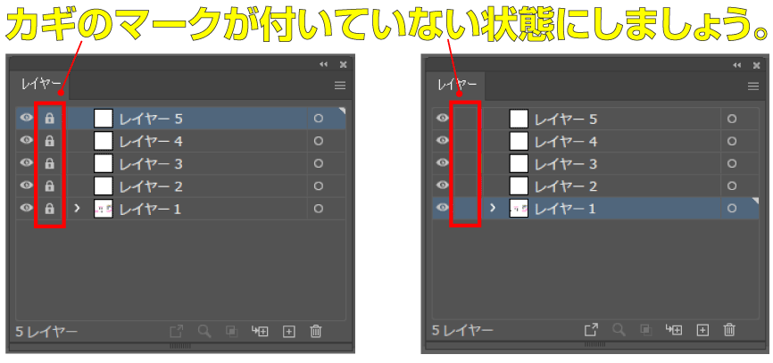 まずはレイヤーのロックが全て外れているかをチェックしましょう。