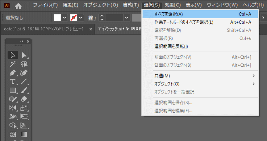[選択]→[すべてを選択]